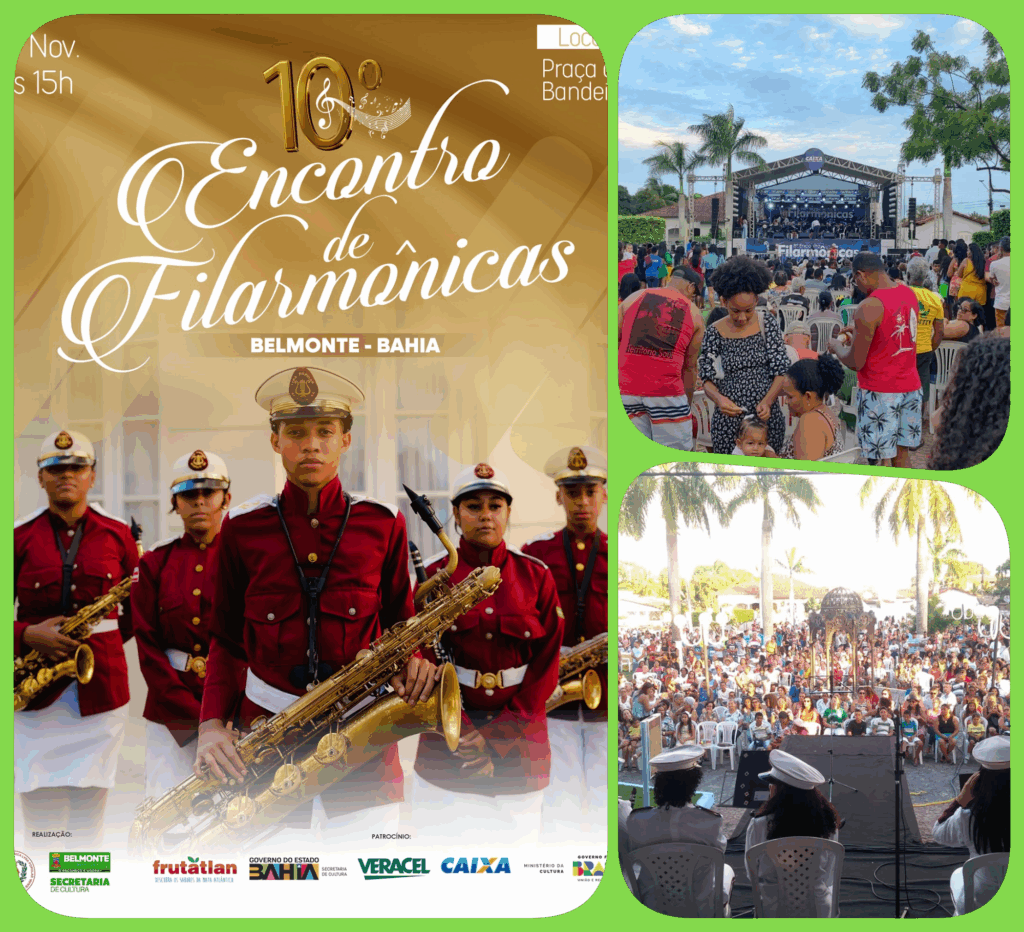 Belmonte realiza, nos dias 22 e 23 de novembro de 2025, o 10º Encontro de Filarmônicas de Belmonte, reunindo bandas da Bahia e de Minas Gerais em uma grande celebração da música, da cultura e da tradição.