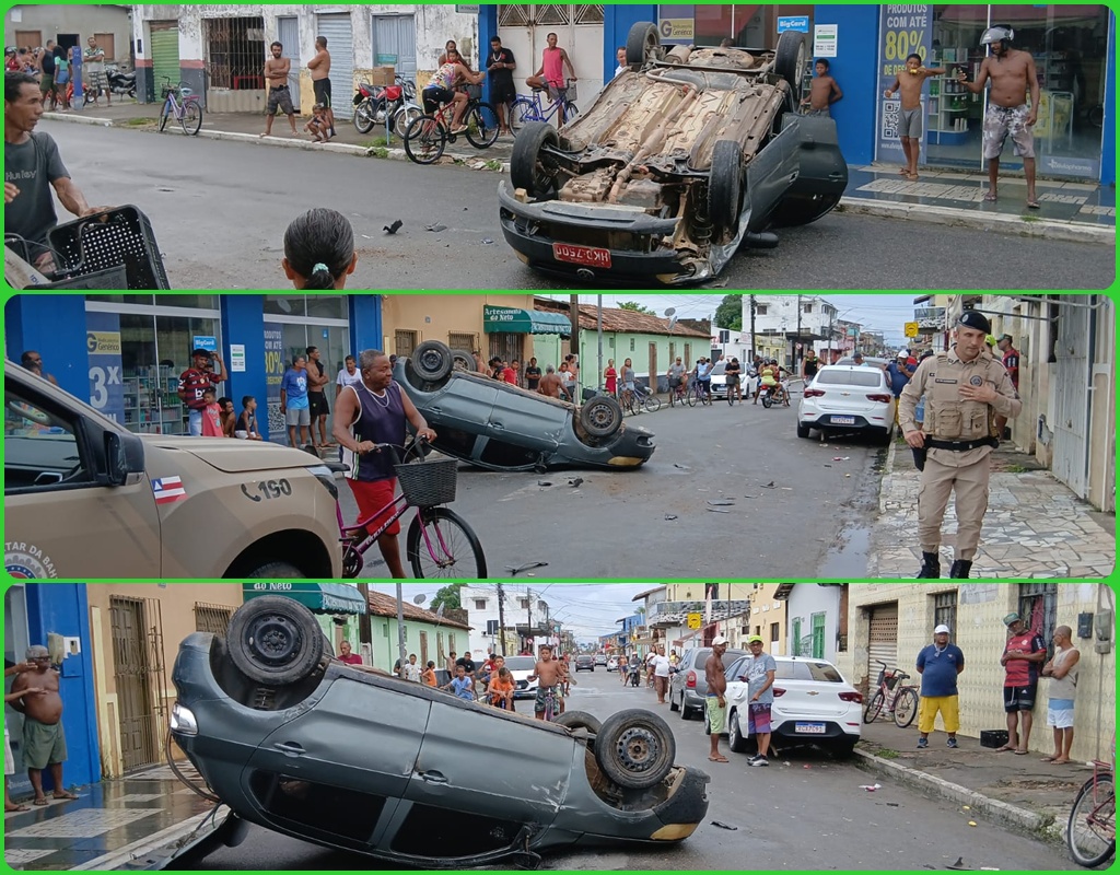 Na tarde desta sexta-feira santa, um grave acidente chamou a atenção dos moradores da cidade de Belmonte. Um veículo trafegava em alta velocidade pela Avenida 23 de Maio, no sentido Rio Mar, quando foi desviar de um ônibus o motorista perdeu a direção e fez o carro tombar atingindo outro veículo que estava no local.