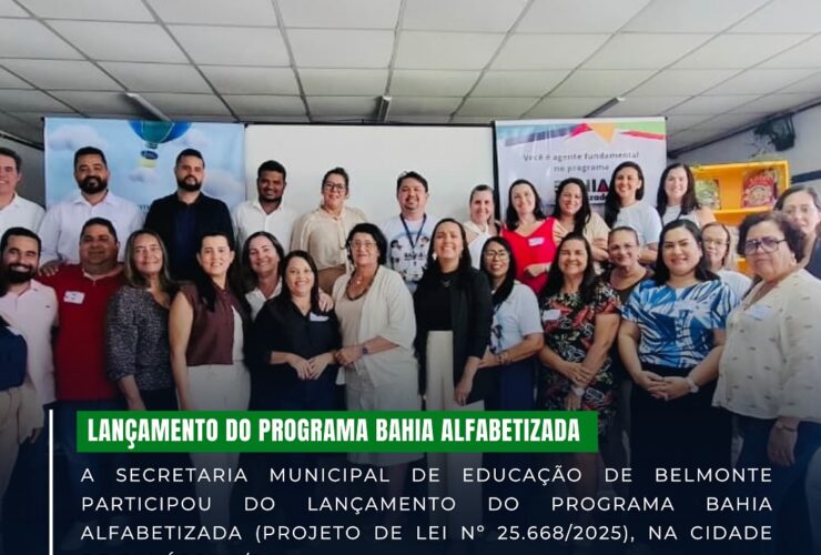 A Secretaria Municipal de Educação de Belmonte participou do lançamento do Programa Bahia Alfabetizada (Projeto de Lei nº 25.668/2025), na cidade de Eunápolis/BA. O evento, que aconteceu na manhã da última terça-feira (25/nov), apresentou os resultados e metas da Alfabetização ...