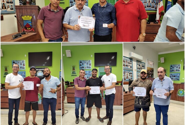 O prefeito de Belmonte, Iêdo Elias, o Presidente da Câmara de Vereadores Luluca da Ambulância e os vereadores Catiano Reis e Eliseu Paixão, entregaram certificados de conclusão dos cursos de empilhadeira, retroescavadeira, motoniveladora elétrica e hidráulica no auditório da Câmara ...