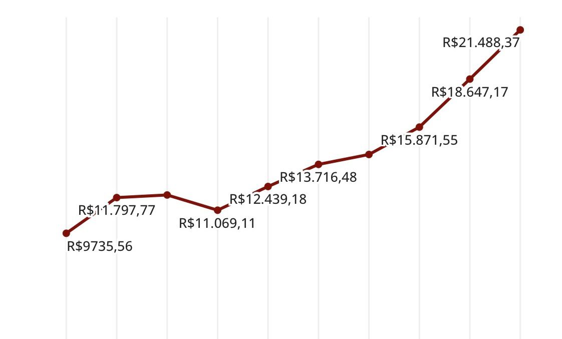 A evolução de Belmonte é notável quando analisamos a série histórica. Em 2018, o valor era de pouco mais de R$ 12 mil. Em cinco anos, o indicador quase dobrou, mesmo em um cenário onde a economia local ainda se apoia majoritariamente nos empregos gerados pela Prefeitura e em pequenas e médias empresas.