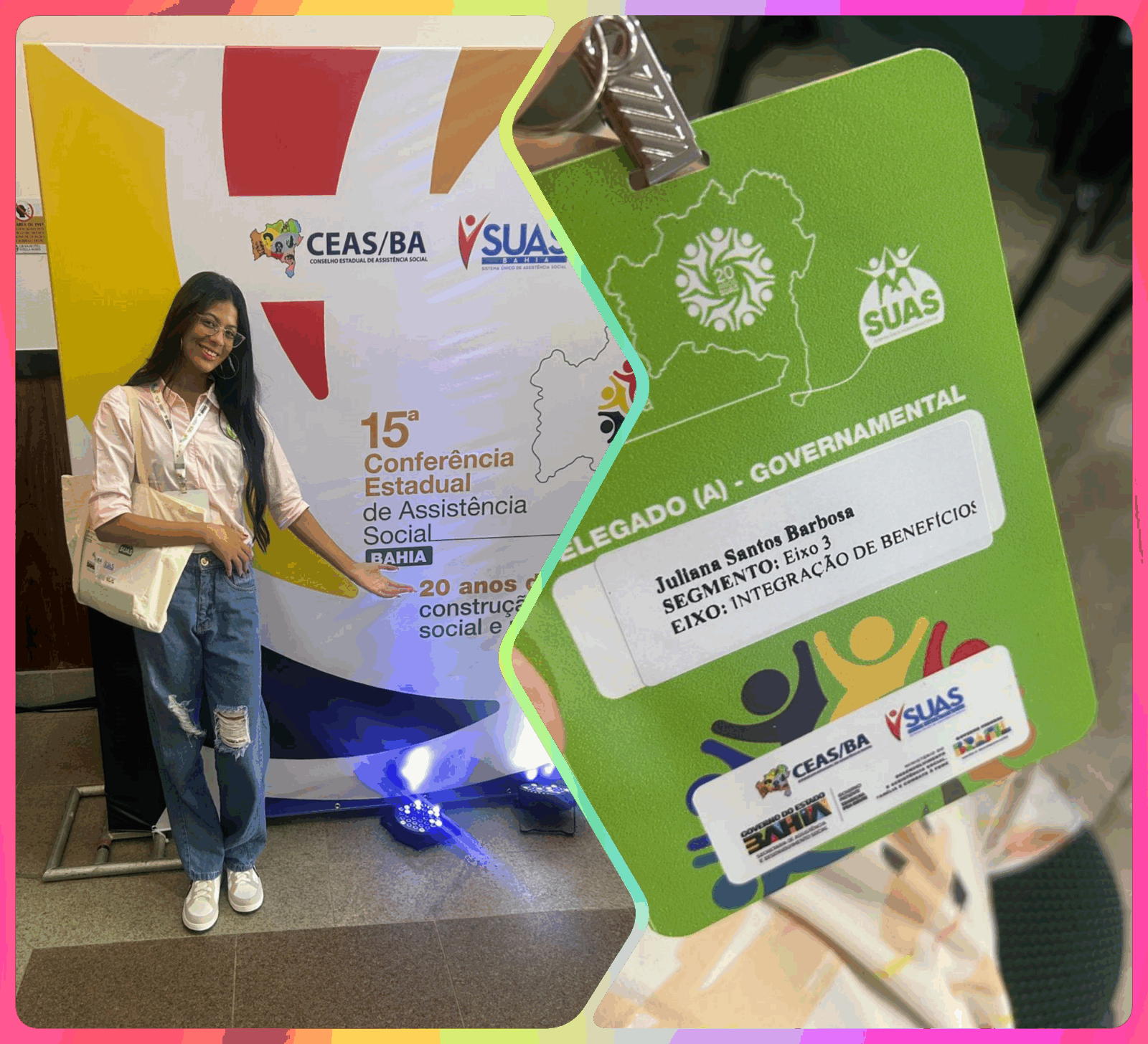 Eleita Delegada Suplente, representando a Sociedade Governamental na Conferência Municipal de Assistência Social, Juliana Santos, funcionária do CRAS – Sede, participou da 15° Conferência Estadual de Assistência Social, em Salvador.