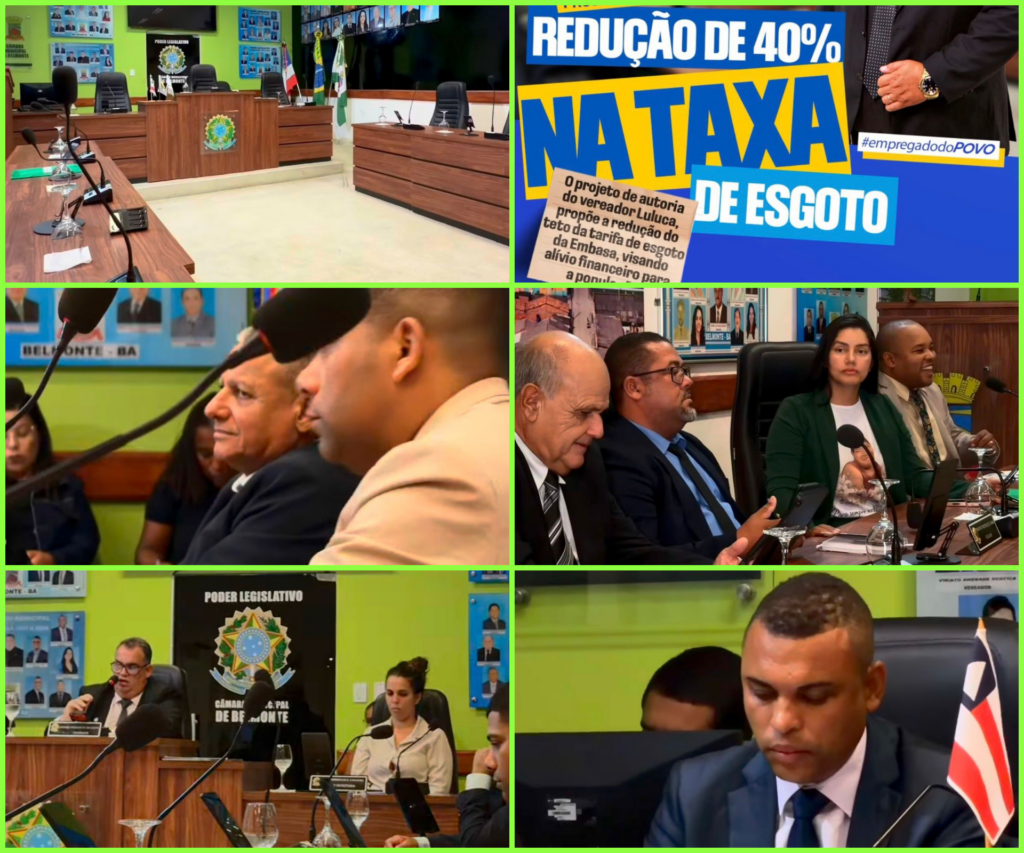 Em uma votação histórica realizada nesta segunda-feira (02/03), a Câmara de Vereadores de Belmonte deu um passo decisivo para aliviar o bolso do cidadão belmontense. Por 9 votos a 0, o legislativo aprovou, em primeira votação, o projeto de lei que reduz a taxa de coleta de esgoto cobrada pela EMBASA de 80% para 40% sobre o valor do consumo de água.