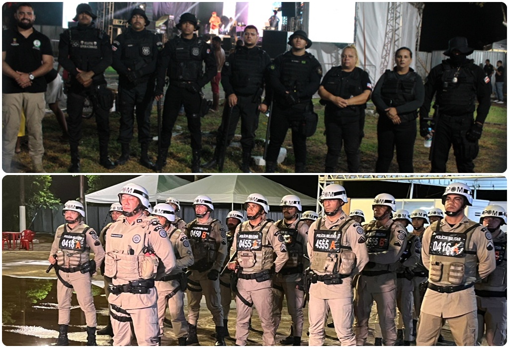 A segurança da festa é feita com Policiais Militares, Bombeiros, Policia Civil e particular e Saúde.