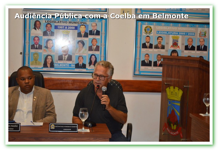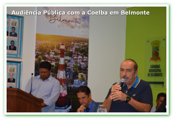 Em uma ação conjunta que envolveu a Prefeitura, Câmara de Vereadores, o Ministério Público (MP), comunidade e a Coelba foi realizada nesta terça-feira, 27 de Maio na Câmara de Vereadores de Belmonte audiência pública com o objetivo de buscar soluções para as constantes oscilações e interrupções no fornecimento de energia que afeta tanto a sede do município de Belmonte quanto os distritos, envolvendo desde o consumidor comum até o setor produtivo e o poder público.