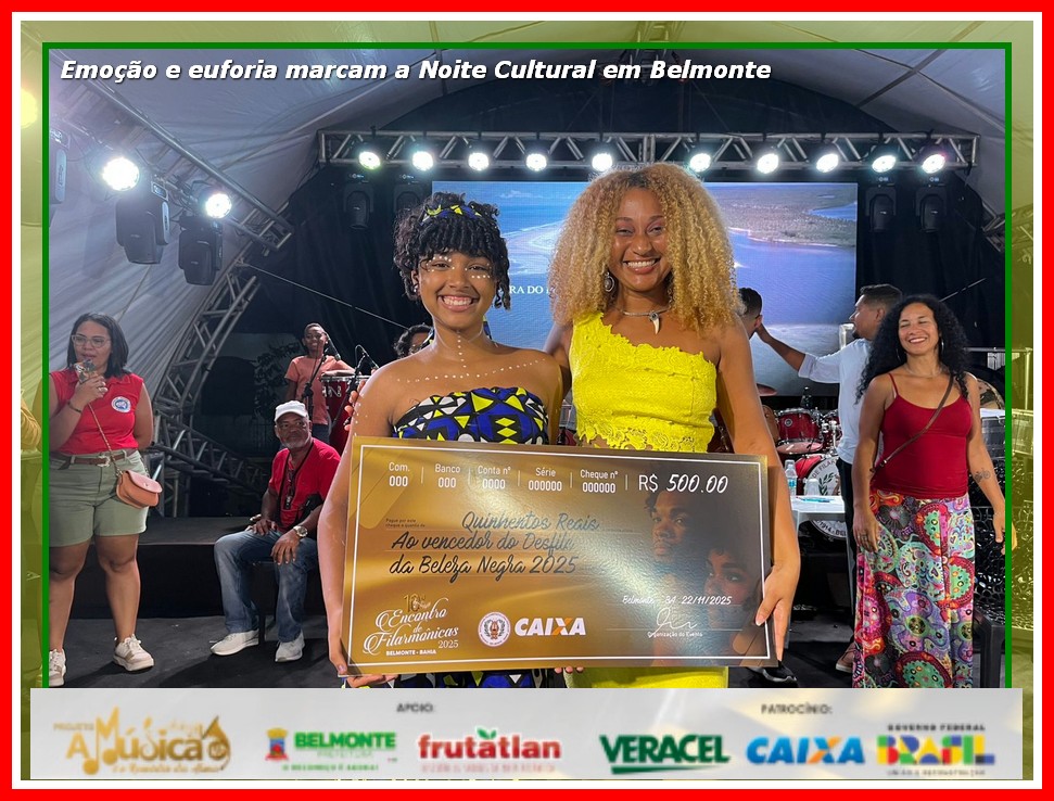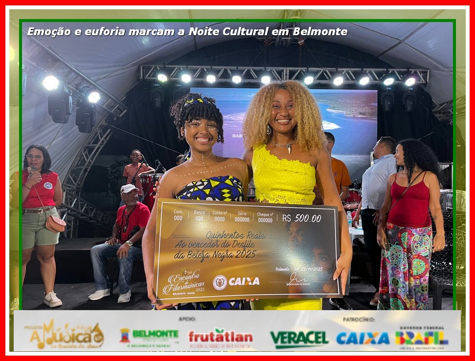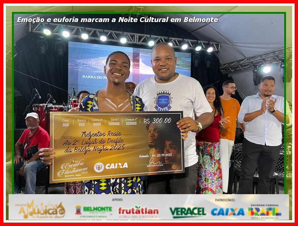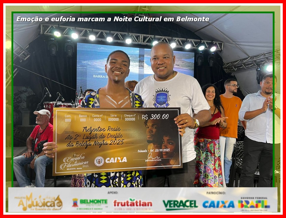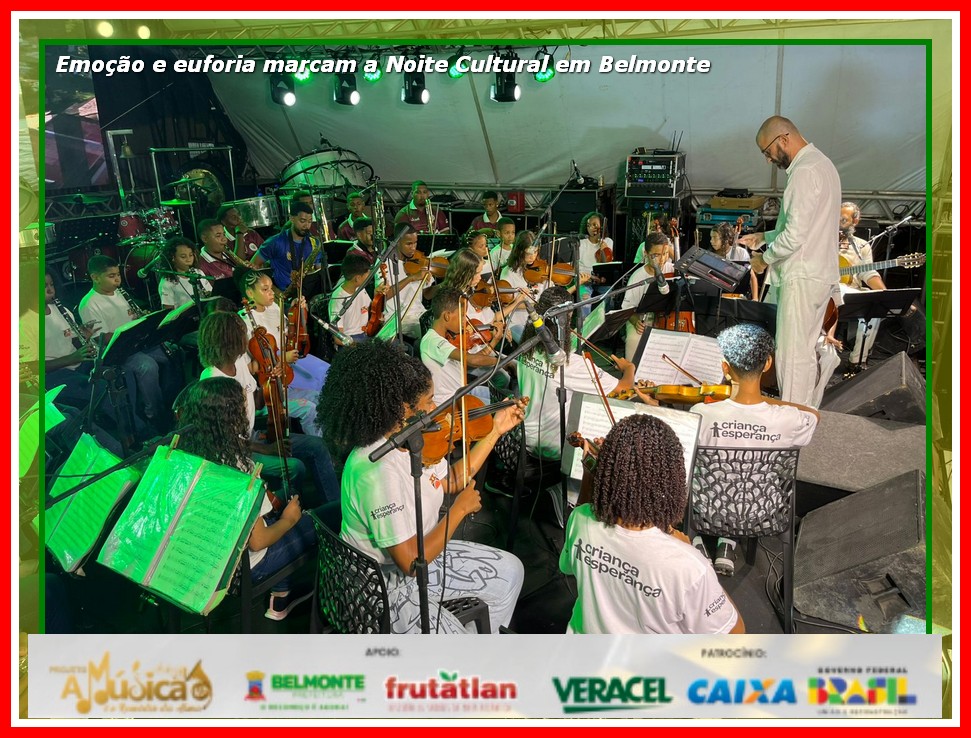 Realizada pela Prefeitura de Belmonte, por meio da Secretaria de Cultura com apoio da Frutatlan, Governo do Estado, Veracel, Caixa Economica e Ministério da Cultura, promoveu no sábado que antecede o 10º Encontro de Filarmônicas muita magia, emoção e euforia à população Belmontense.