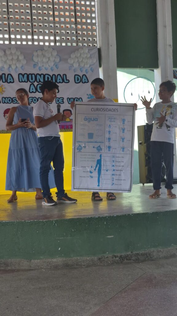 Durante o evento, alunos e professores apresentaram trabalhos que destacaram, de maneira criativa e educativa, a importância da água para a vida e a necessidade de preservar o meio ambiente