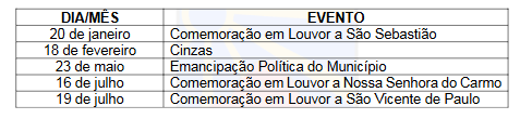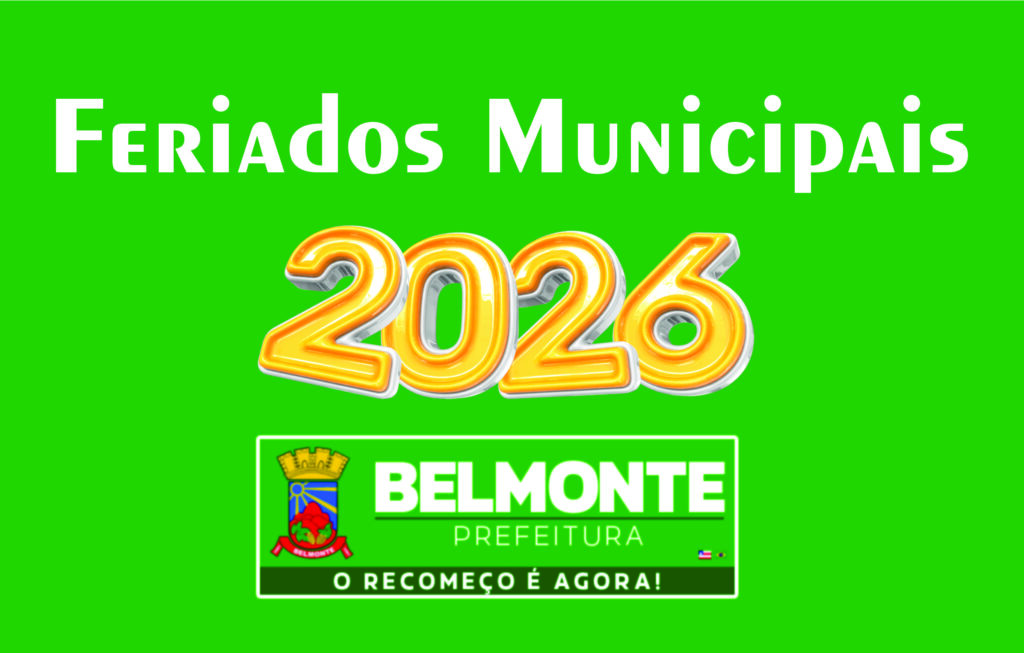 A gestão do Prefeito de Belmonte Iêdo Elias publicou, nesta segunda-feira (05/01), Decreto 001/2026 que estabelece os feriados municipais de 2026. As datas deverão ser observadas pelos órgãos e entidades o Calendário dos Feriados municipais de Belmonte conforme tabela abaixo