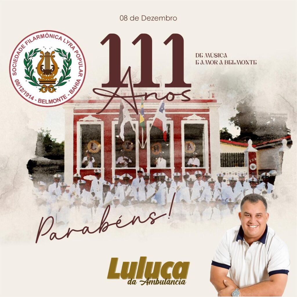 Reafirmando seu compromisso como vereador e cidadão belmontense, Luluca parabenizou a todos que compõem a filarmônica: “Deixo aqui meu respeito, minha admiração e minha gratidão a todos que fazem parte dessa trajetória centenária. Que Deus continue abençoando essa instituição tão importante. Parabéns, Filarmônica Lyra Popular de Belmonte, vocês honram o nome da nossa cidade e fazem parte da nossa identidade.”