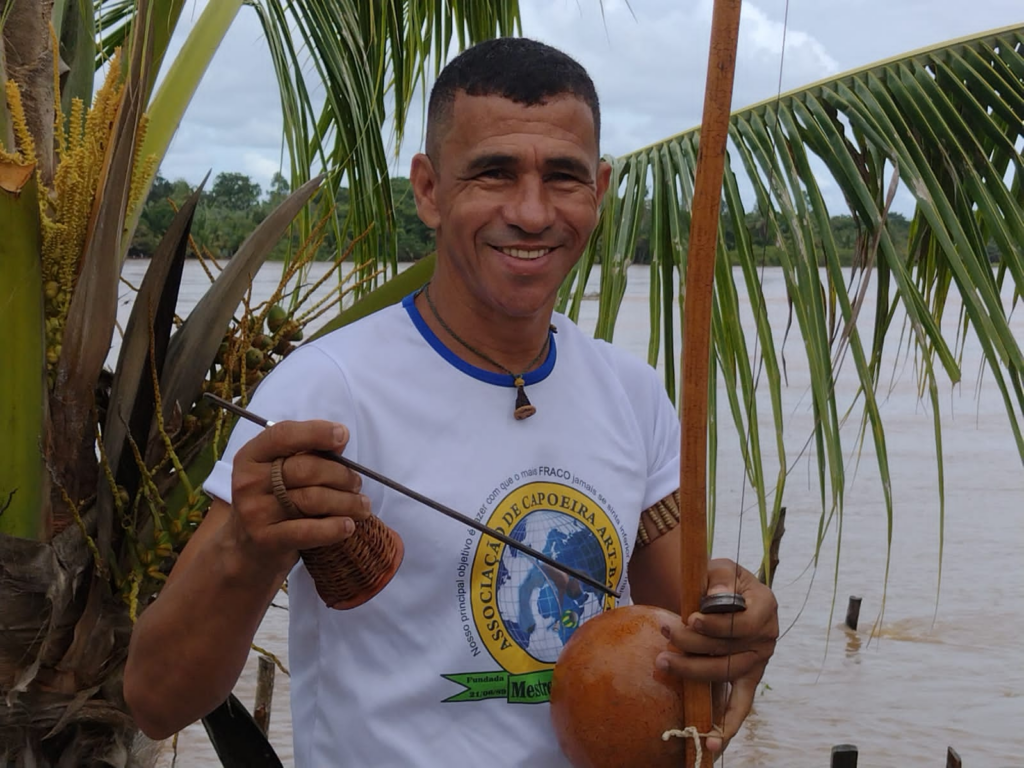 Cada nota que entoa carrega o sal da história e a doçura firme da luta transformada em arte. Suas composições não apenas soam: ensinam, bordando ancestralidade em versos de respeito mútuo. Ali, o passado conversa com o presente sem ruído, e a capoeira se reconhece inteira, digna e plural.