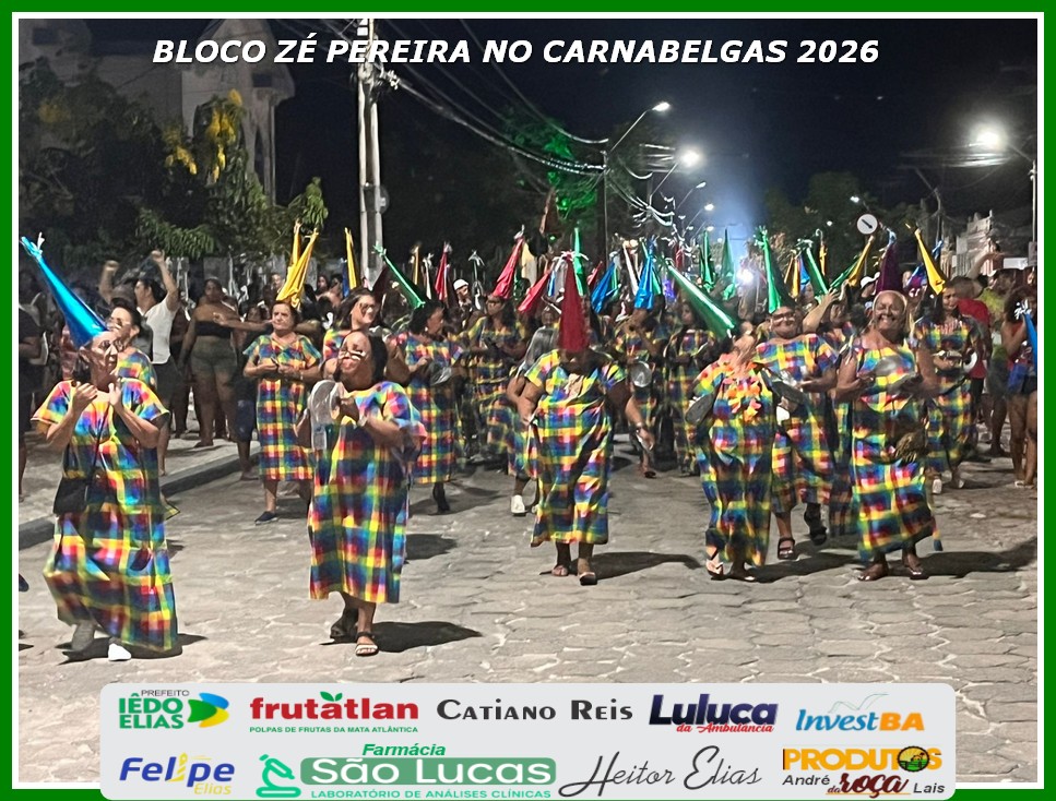 O Bloco Zé Pereira é um dos momentos mais aguardados do Carnabelgas, marcando oficialmente o início das festividades carnavalescas com muita música, cores e tradição.