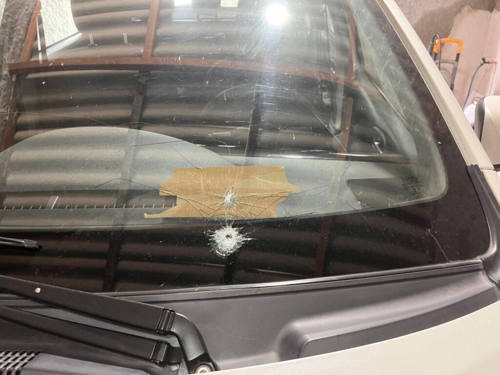 Uma pedra lançada por um pneu de carreta que passava na pista contrária provocou a quebra do para-brisa do veículo da nossa equipe durante seu trajeto na rodovia estadual BA-275 em direção a Belmonte. O incidente ocorreu devido a uma operação de tapa-buraco mal finalizada, que deixou o asfalto com pedaços soltos e irregulares. Quando a carreta passou sobre o trecho mal recuperado, o pneu acabou arremessando um pedaço do asfalto contra o carro que seguia no sentido oposto.