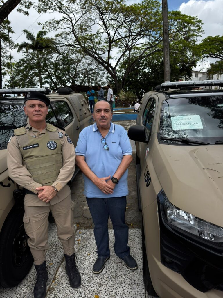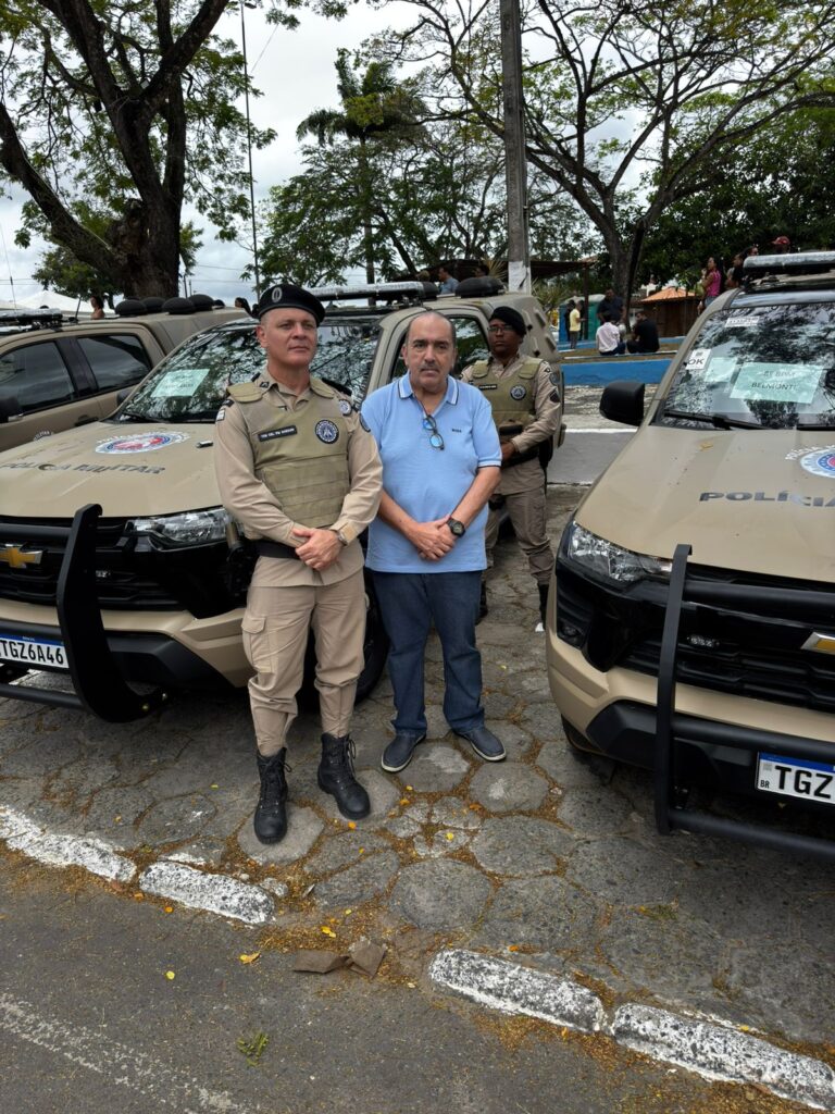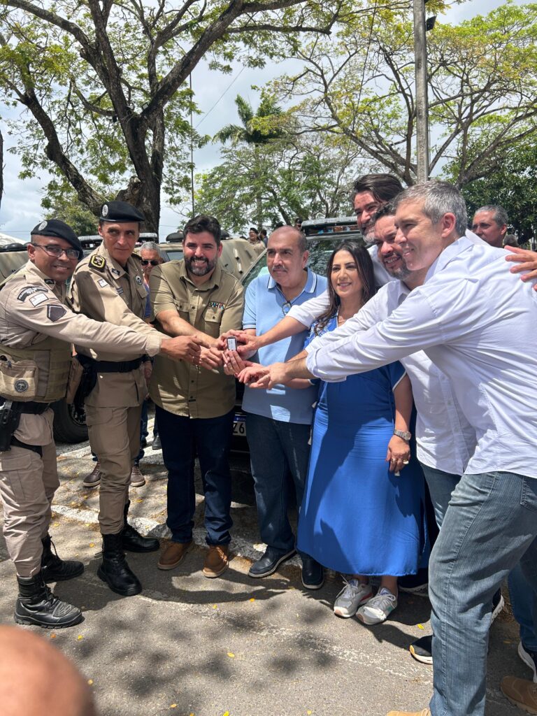 A cerimônia de entrega de novas viaturas para unidades da Polícia Militar do Extremo Sul da Bahia, aconteceu na Avenida Marechal Castelo Branco, em frente à prefeitura de Teixeira de Freitas.