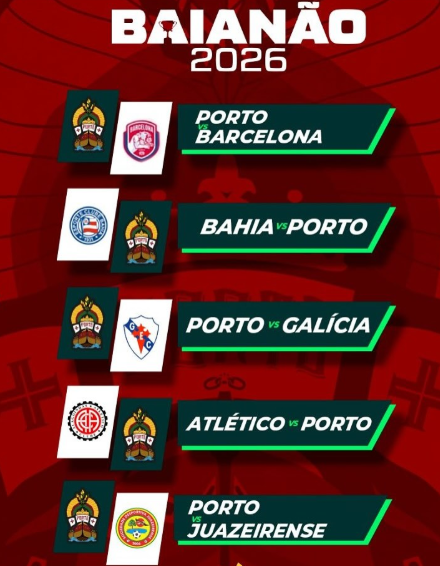 O Porto Sport Club já conhece o caminho que terá pela frente no Campeonato Baiano 2026. A tabela oficial da competição foi divulgada pela Federação Bahiana de Futebol (FBF), e o time de Porto Seguro fará sua estreia diante das torcidas, no Estádio Agnaldo Bento do Santos, contra o Jacuipense, nos dias 10 ou 11 de janeiro.