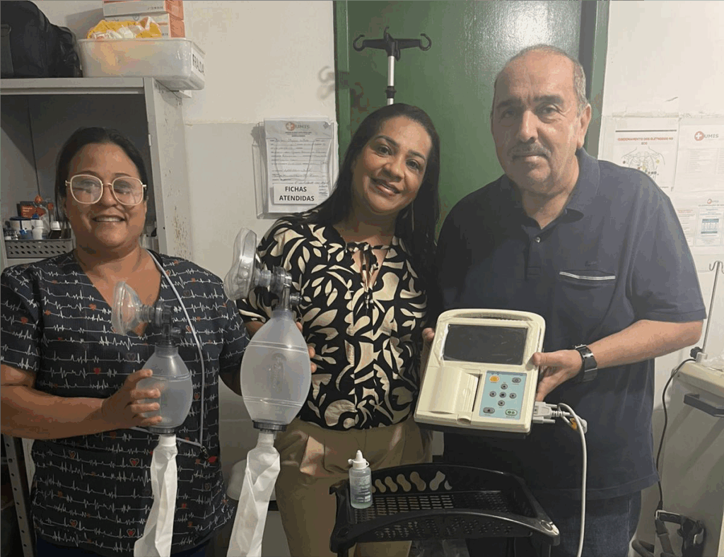 Os novos equipamentos 1 eletrocardiograma (ECG) e 1 ambu adulto e pediatra (bolsa-válvula-máscara) irão contribuir para ampliar e qualificar o atendimento.