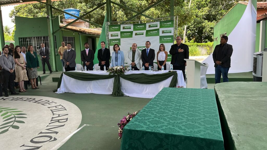O evento aconteceu no espaço da Filarmônica 15 de Setembro, com execução dos hinos Nacional e de Belmonte e formação da mesa.