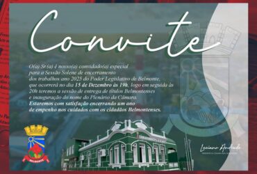 A Câmara Municipal de Vereadores de Belmonte realizará, no próximo ...