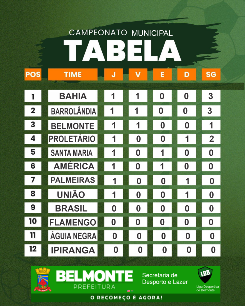 No domingo, dia 19, a emoção do futebol local continua com a terceira rodada do Campeonato Municipal de Belmonte. Dois jogos prometem agitar a torcida na busca pelos melhores resultados. O primeiro confronto será entre União e Brasil de Boca do Córrego, times tradicionais que buscam se firmar na competição.