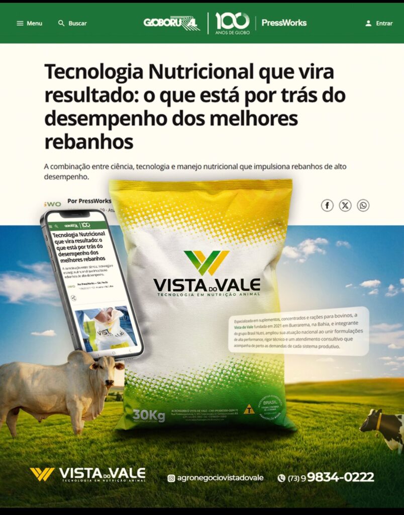 A Vista do Vale, empresa do Grupo Brasil Nutri Ambiental, foi destaque em uma matéria especial exibida pelo Globo Rural, que reconheceu a tecnologia nutricional desenvolvida pela marca e os excelentes resultados alcançados em alguns dos melhores rebanhos do país.